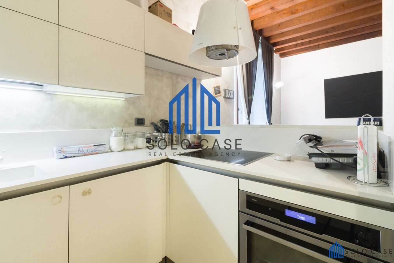 - Cucina a vista moderna e completamente arredata, ideale per ottimizzare gli spazi