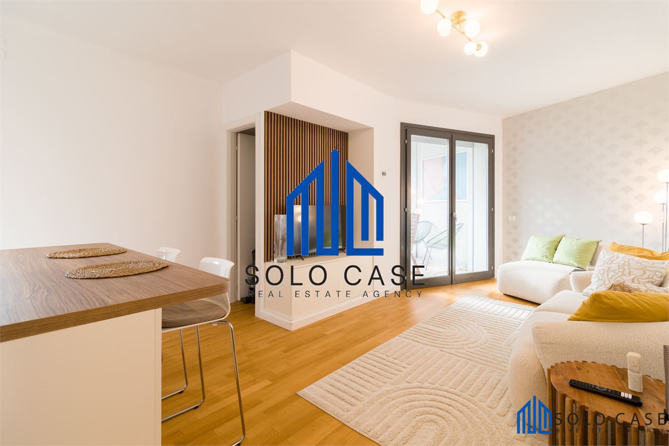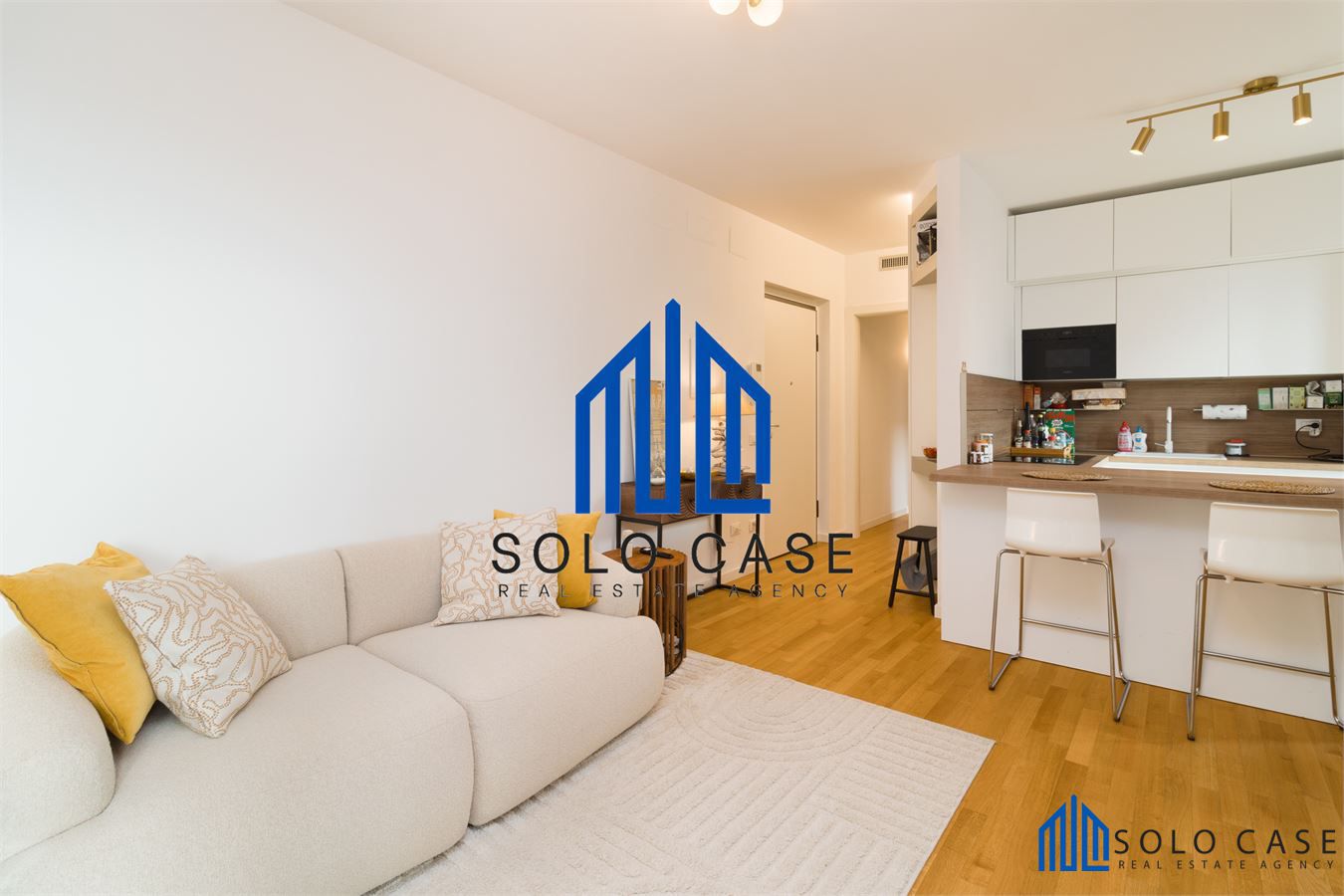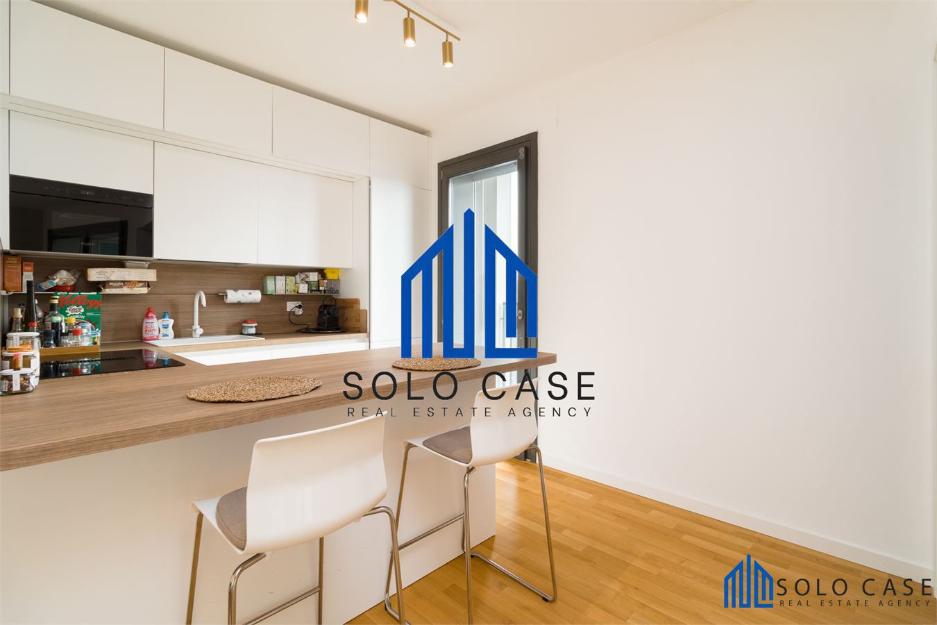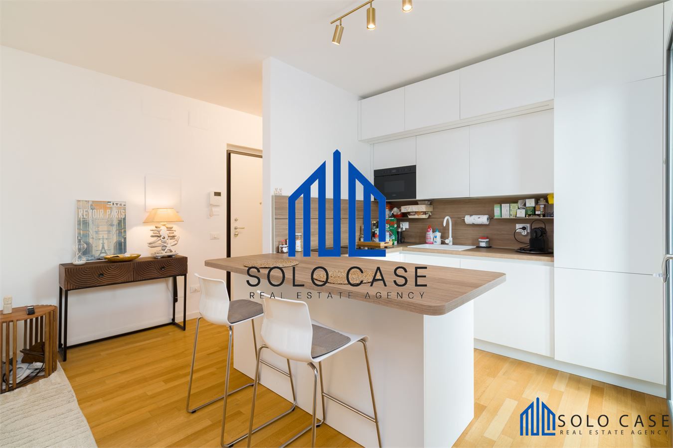 L' appartamento, finemente arredato e corredato e si compone di una zona giorno con salone e cucina a vista moderna su misura, completa di elettrodomestici di alta gamma con forno a vapore, piano cottura a induzione con cappa integrata e frigorifero da incasso.