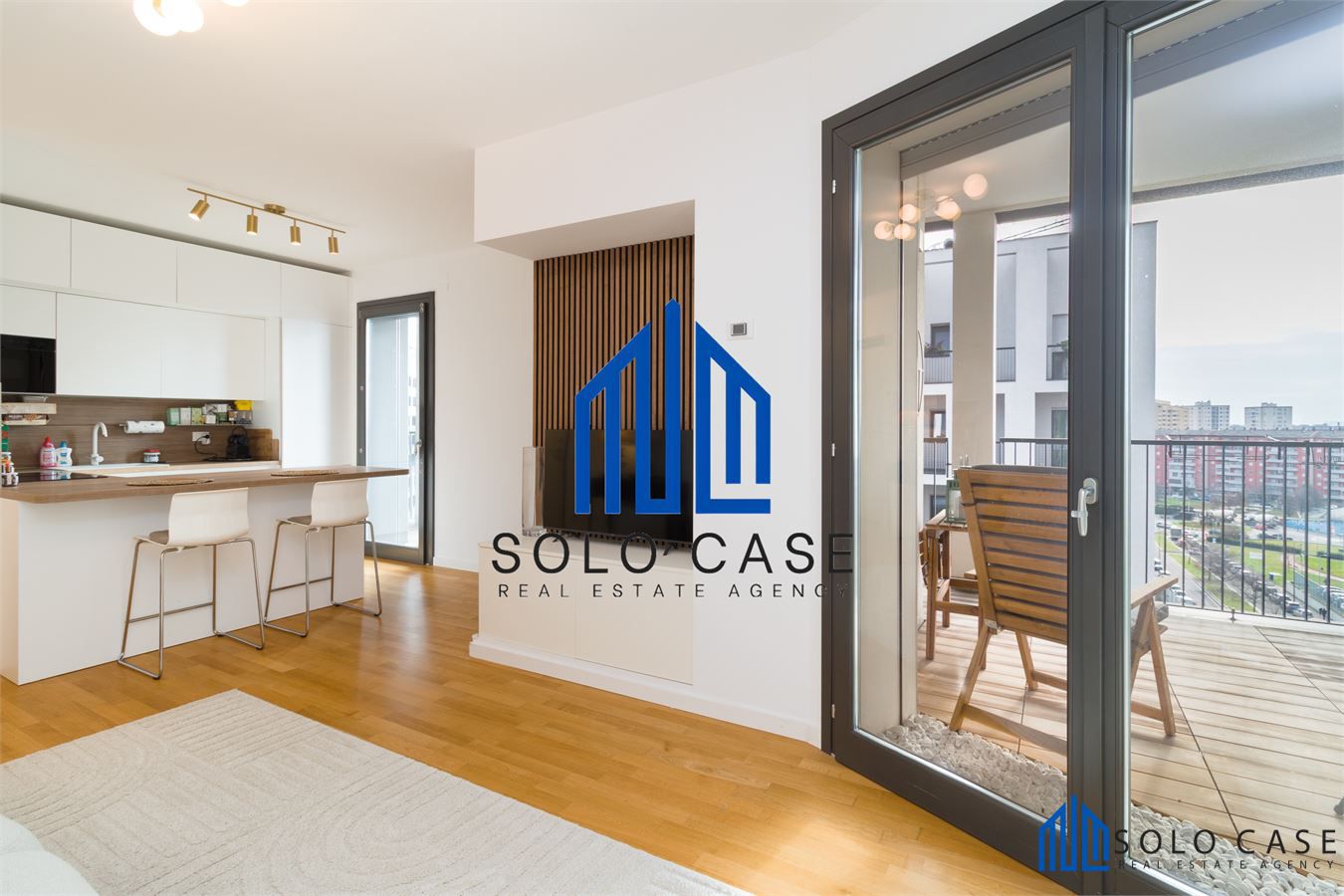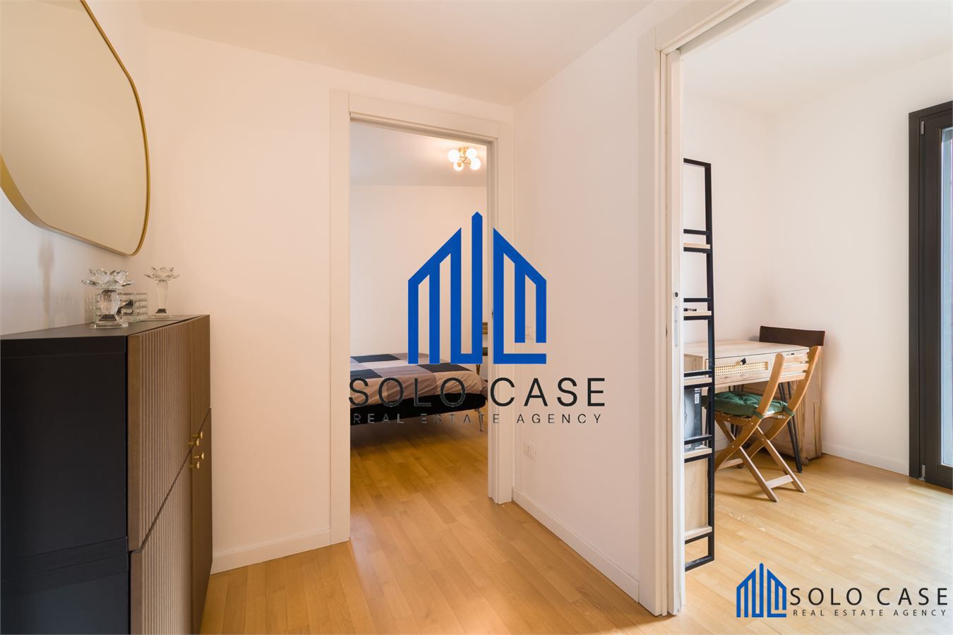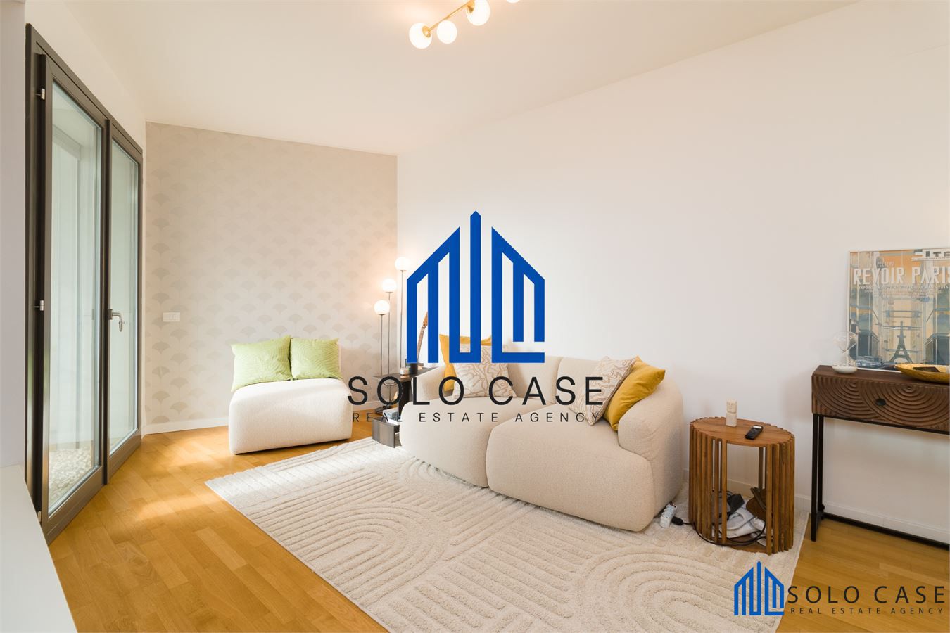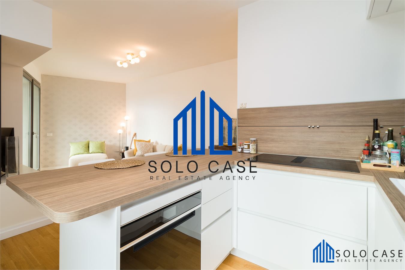 L' appartamento, finemente arredato e corredato e si compone di una zona giorno con salone e cucina a vista moderna su misura, completa di elettrodomestici di alta gamma con forno a vapore, piano cottura a induzione con cappa integrata e frigorifero da incasso.