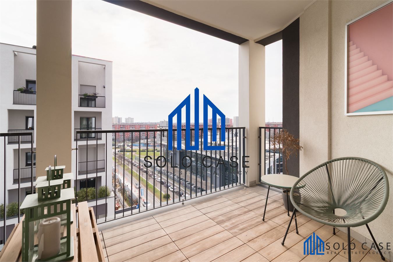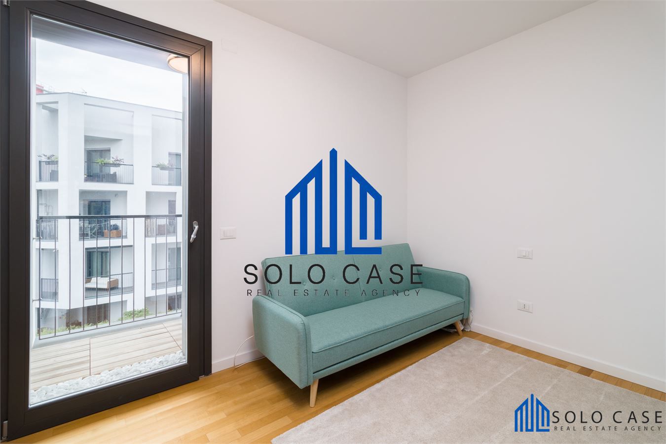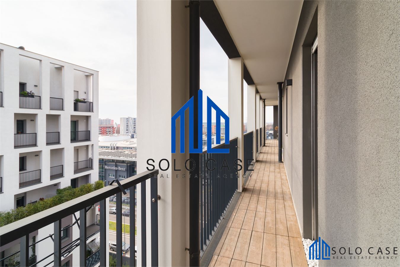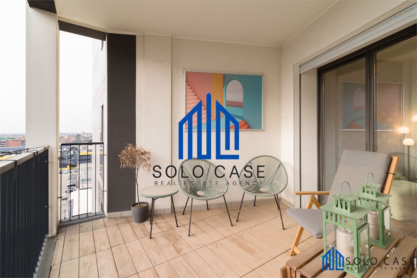 La camera master usufruisce di un proprio balcone con uscita diretta mentre, il resto della casa, gode di un terrazzo panoramico di 17 metri quadrati ,loggiato e rivestito in legno per un maggior comfort.
